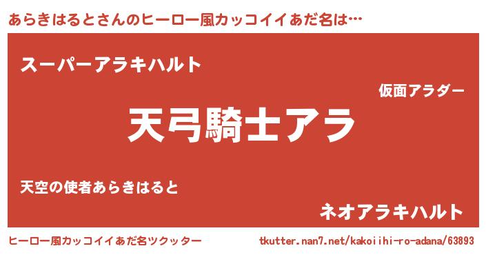 | 男性向けラノベタイトル風あだ名 | 『あらきはるとの嫁は女の子じゃないと思った?』 |