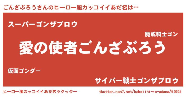 | 男性向けラノベタイトル風あだ名 | 『ノーゲーム・ノーゴンザブロウ』 |