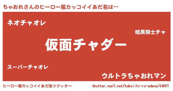 | 男性向けラノベタイトル風あだ名 | 『この素晴らしい世界にちゃおれを!』 |