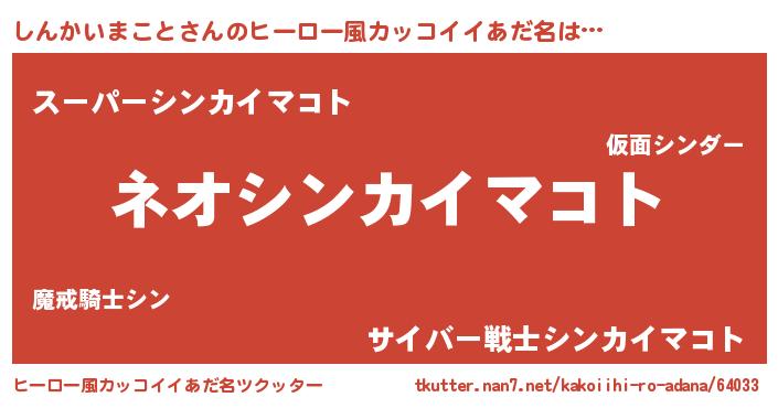 しんかいまことさんのヒーロー風カッコイイあだ名をツクッター!