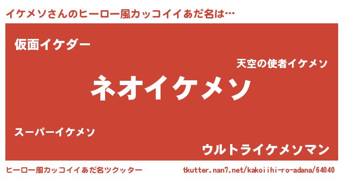 | 胡散臭い通販商品みたいなあだ名 | 『絶対に幸福をもたらす健康食品…その名も「イケメソ」』 |