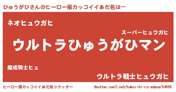 | 男性向けラノベタイトル風あだ名 | 『ひゅうがひ~年齢イコール彼女いない歴の魔法使い~』 |