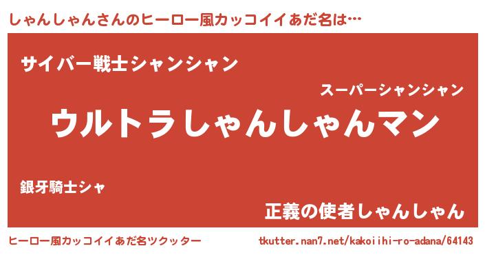 | 意味不明あだ名 | 『しゃんしゃんフォーエバー』 |