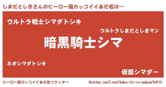 | 男性向けラノベタイトル風あだ名 | 『シマダトシキスレイヤー』 |