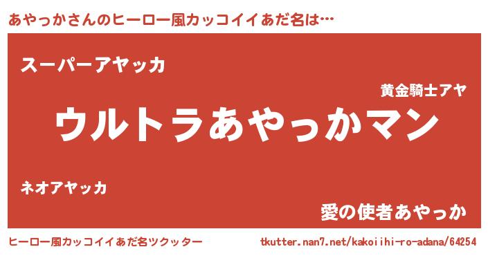 | 男性向けラノベタイトル風あだ名 | 『あやっかに滅ぼされるだけの簡単なお仕事です』 |