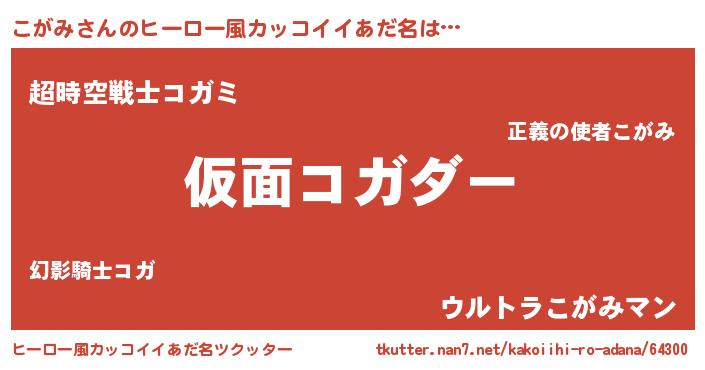 | 男性向けラノベタイトル風あだ名 | 『はたらくこがみさま!』『緋弾のコガミ』 |
