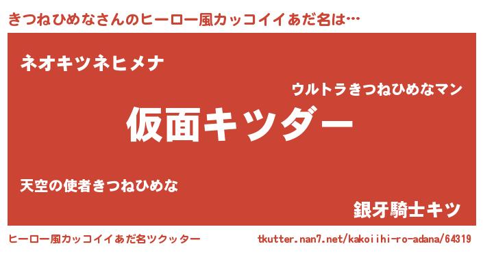 | 欧米人風あだ名 | 『きつねひめな・ステッグマイヤー』 |