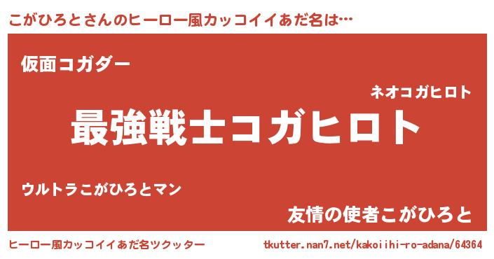 | 男性向けラノベタイトル風あだ名 | 『Re:こがひろとから始める異世界生活』 |