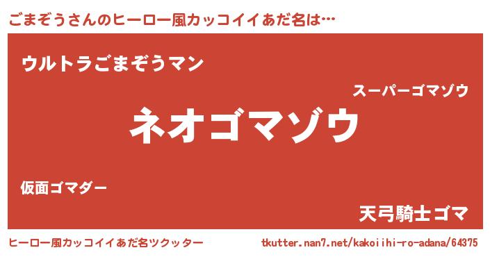 | 男性向けラノベタイトル風あだ名 | 『ごまぞうという概念が存在しない退屈な世界 』 |
