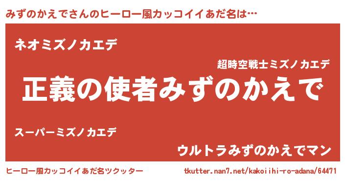 | 男性向けラノベタイトル風あだ名 | 『ミズノカエデスレイヤー』 |
