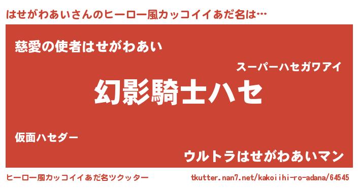 | 男性向けラノベタイトル風あだ名 | 『はせがわあいの嫁は女の子じゃないと思った?』 |