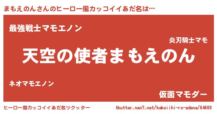 | 男性向けラノベタイトル風あだ名 | 『ノーゲーム・ノーマモエノン』 |