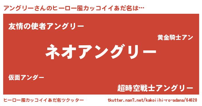 | 男性向けラノベタイトル風あだ名 | 『アングリーという概念が存在しない退屈な世界 』 |