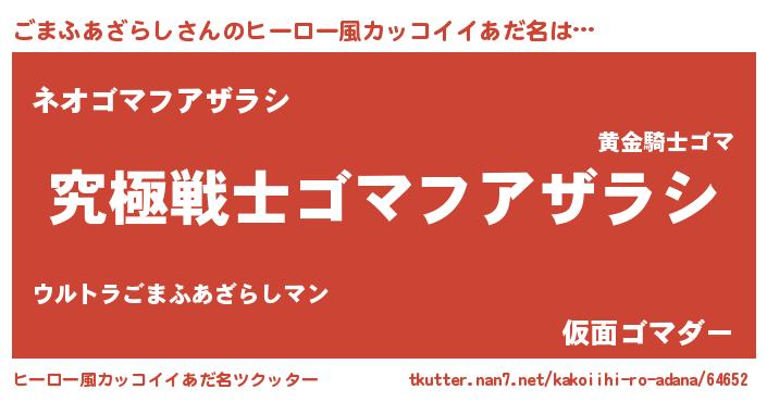 | 男性向けラノベタイトル風あだ名 | 『ごまふあざらし~年齢イコール彼女いない歴の魔法使い~』 |