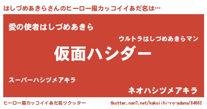 | 意味不明あだ名 | 『住所不定無職はしづめあきら(11歳)』 |