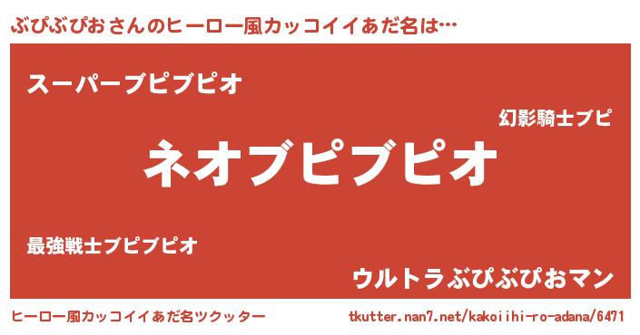 | 女子向けラノベタイトル風あだ名 | 『異世界で失敗しない100のぶぴぶぴお』 |