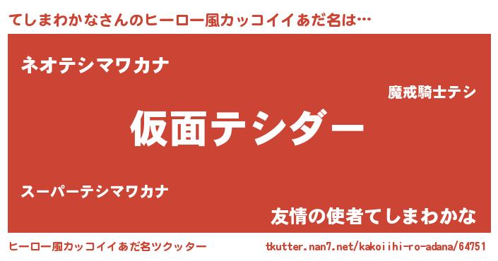 | 男性向けラノベタイトル風あだ名 | 『魔弾の王とてしまわかな』 |