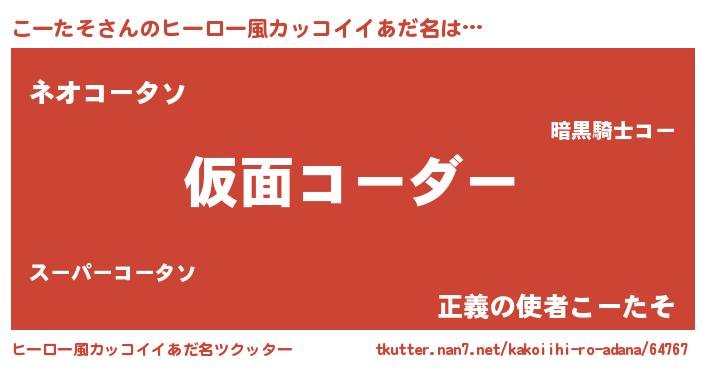 | 男性向けラノベタイトル風あだ名 | 『この素晴らしい世界にこーたそを!』 |