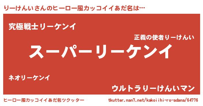 | 意味不明あだ名 | 『ペロリンりーけんい』『自称りーけんい』 |