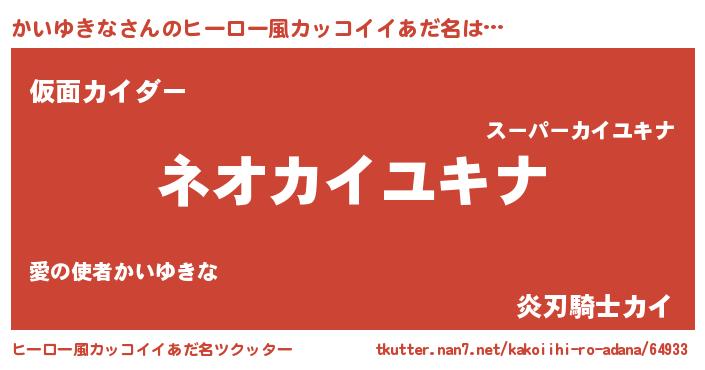| 女子向けラノベタイトル風あだ名 | 『異世界で失敗しない100のかいゆきな』 |