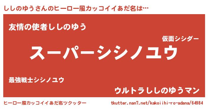 | 意味不明あだ名 | 『ペロリンししのゆう』『自称ししのゆう』 |