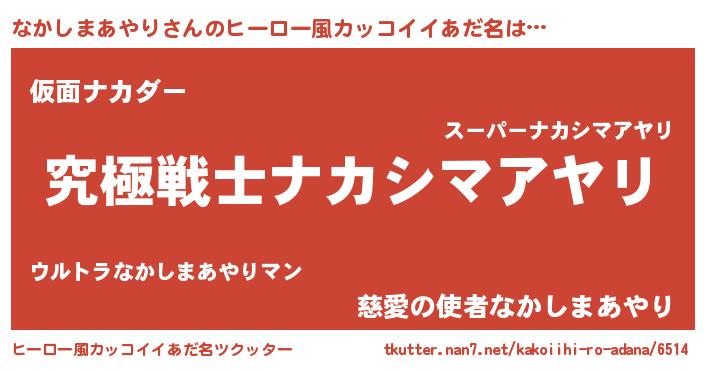 | 男性向けラノベタイトル風あだ名 | 『Re:なかしまあやりから始める異世界生活』 |