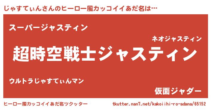 | 女子向けラノベタイトル風あだ名 | 『じゃすてぃんなんてお断りですっ。』 |