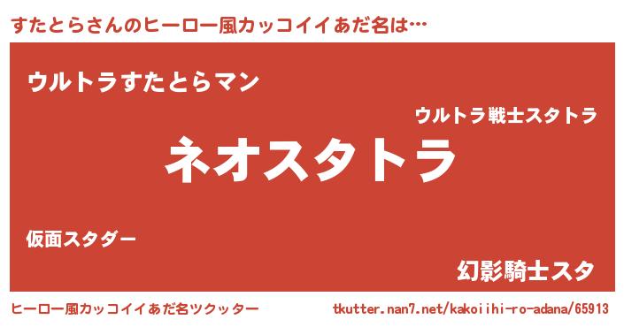 | 意味不明あだ名 | 『永久保存すたとら』『自称すたとら』 |