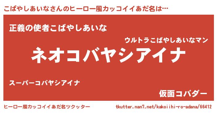 | 女子向けラノベタイトル風あだ名 | 『異世界で失敗しない100のこばやしあいな』 |