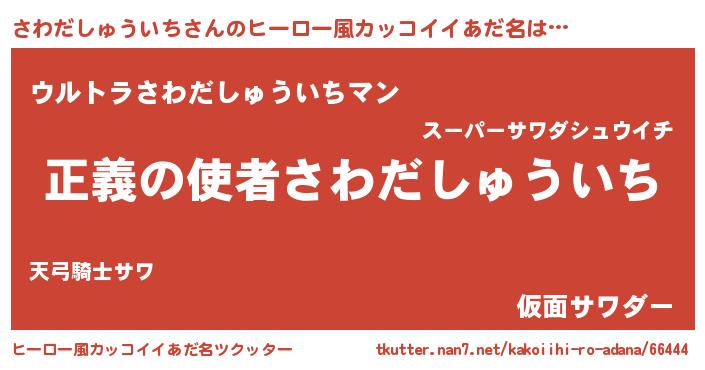 | 男性向けラノベタイトル風あだ名 | 『おまえをオタクにしてやるから、俺をさわだしゅういちにしてくれ! 』 |