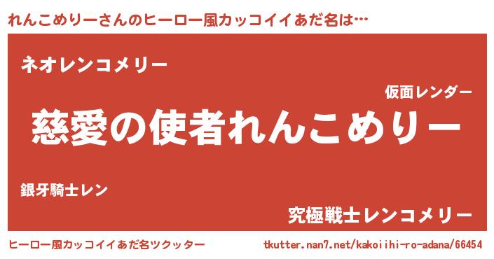 | 女子向けラノベタイトル風あだ名 | 『死神れんこめりーの再婚』 |