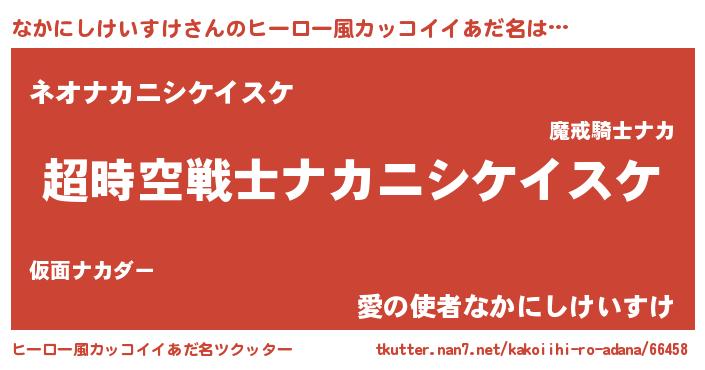 | 男性向けラノベタイトル風あだ名 | 『ナカニシケイスケスレイヤー』 |