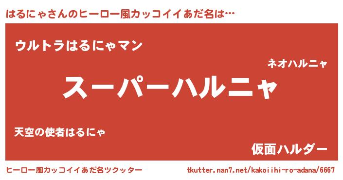 | 欧米人風あだ名 | 『マイケルはるにゃ』 |
