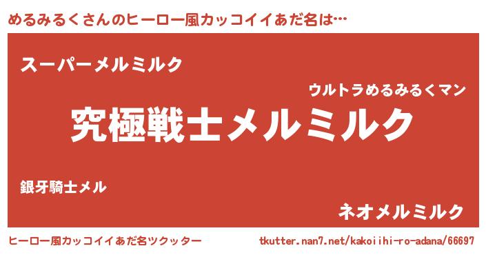 | 意味不明あだ名 | 『自称めるみるく』『ペロリンめるみるく』 |