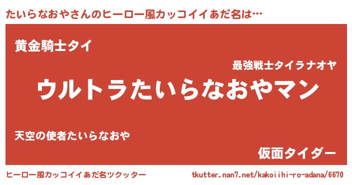 | 意味不明あだ名 | 『たいらなおやフォーエバー』 |