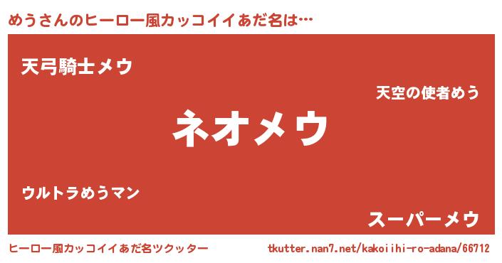| ポケモン風あだ名 | 『ゼニメウ』『メウゴンZ』『ヒメウ』 |