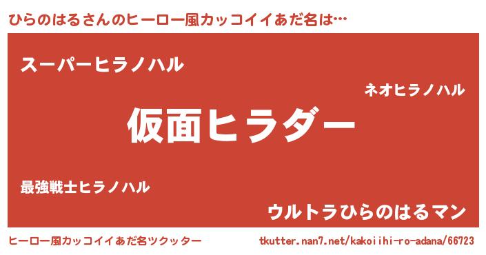 ひらのはるさんのヒーロー風カッコイイあだ名をツクッター!