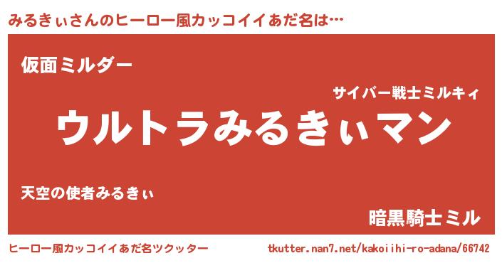 | ヘコむあだ名 | 『豆乳』『みるを』『みるっふぃ~』 |