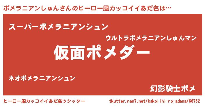 | 男性向けラノベタイトル風あだ名 | 『ポメラニアンシュンスレイヤー』 |