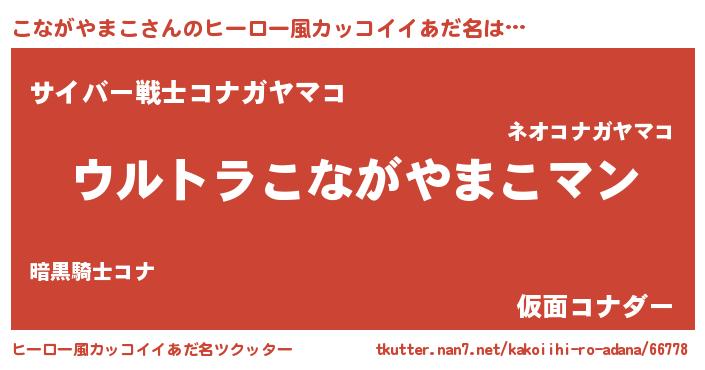 | 男性向けラノベタイトル風あだ名 | 『やはりこながやまこの青春ラブコメはまちがっている 』 |