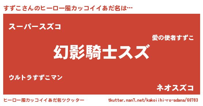 | 男性向けラノベタイトル風あだ名 | 『すずこの嫁は女の子じゃないと思った?』 |
