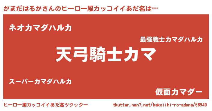 | 男性向けラノベタイトル風あだ名 | 『かまだはるかの嫁は女の子じゃないと思った?』 |