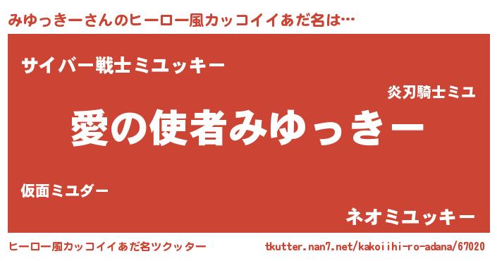 | 男性向けラノベタイトル風あだ名 | 『ノーゲーム・ノーミユッキー』 |