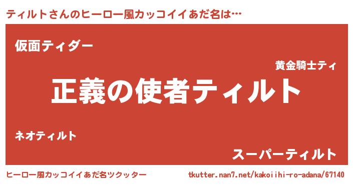 | 男性向けラノベタイトル風あだ名 | 『おまえをオタクにしてやるから、俺をティルトにしてくれ! 』 |