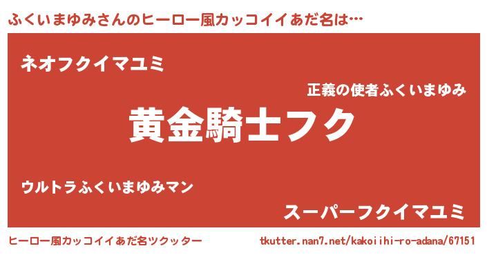 | 男性向けラノベタイトル風あだ名 | 『ダンジョンにふくいまゆみを求めるのは間違っているだろうか』 |