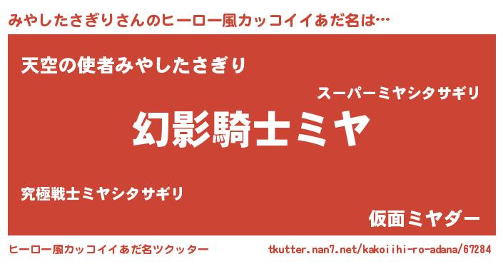| 意味不明あだ名 | 『とにかく怪しいみやしたさぎり』 |