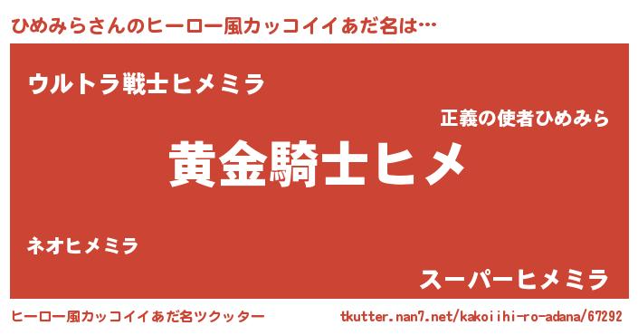 | ポケモン風あだ名 | 『ヒヒメミラ』『ヒメキング』 |