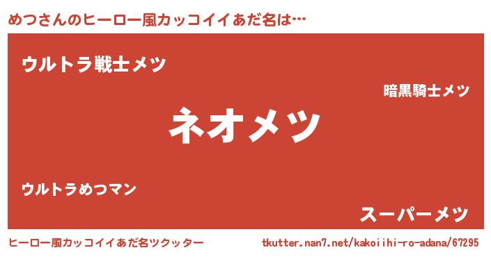 | 胡散臭い通販商品みたいなあだ名 | 『絶対に幸福をもたらす水素水…その名も「めつ」』 |