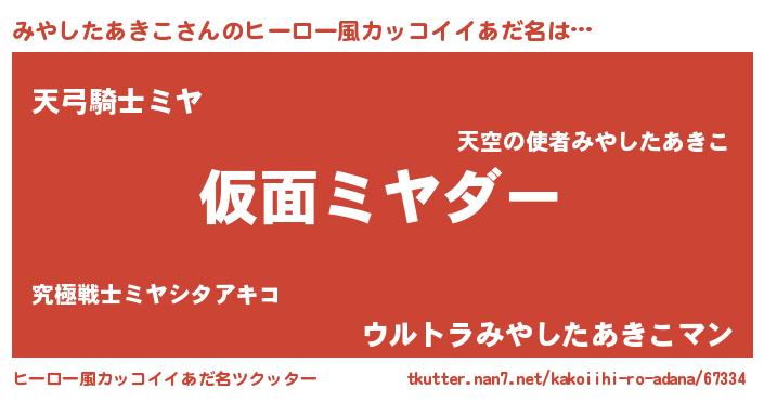 | 男性向けラノベタイトル風あだ名 | 『魔弾の王とみやしたあきこ』 |