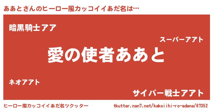 | 男性向けラノベタイトル風あだ名 | 『転生したらああとだった件』 |